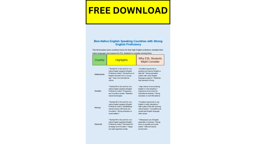 FREE PDF 10 Non-Native English Speaking Countries with Strong English Proficiency for ESL Learners